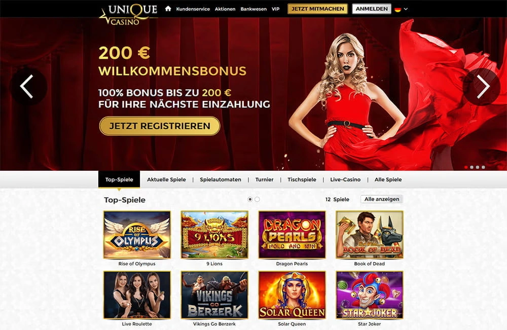 Mit dem Unique Casino Bonus können Sie viele Spiele ausprobieren. Hier die Top-Empfehlungen: